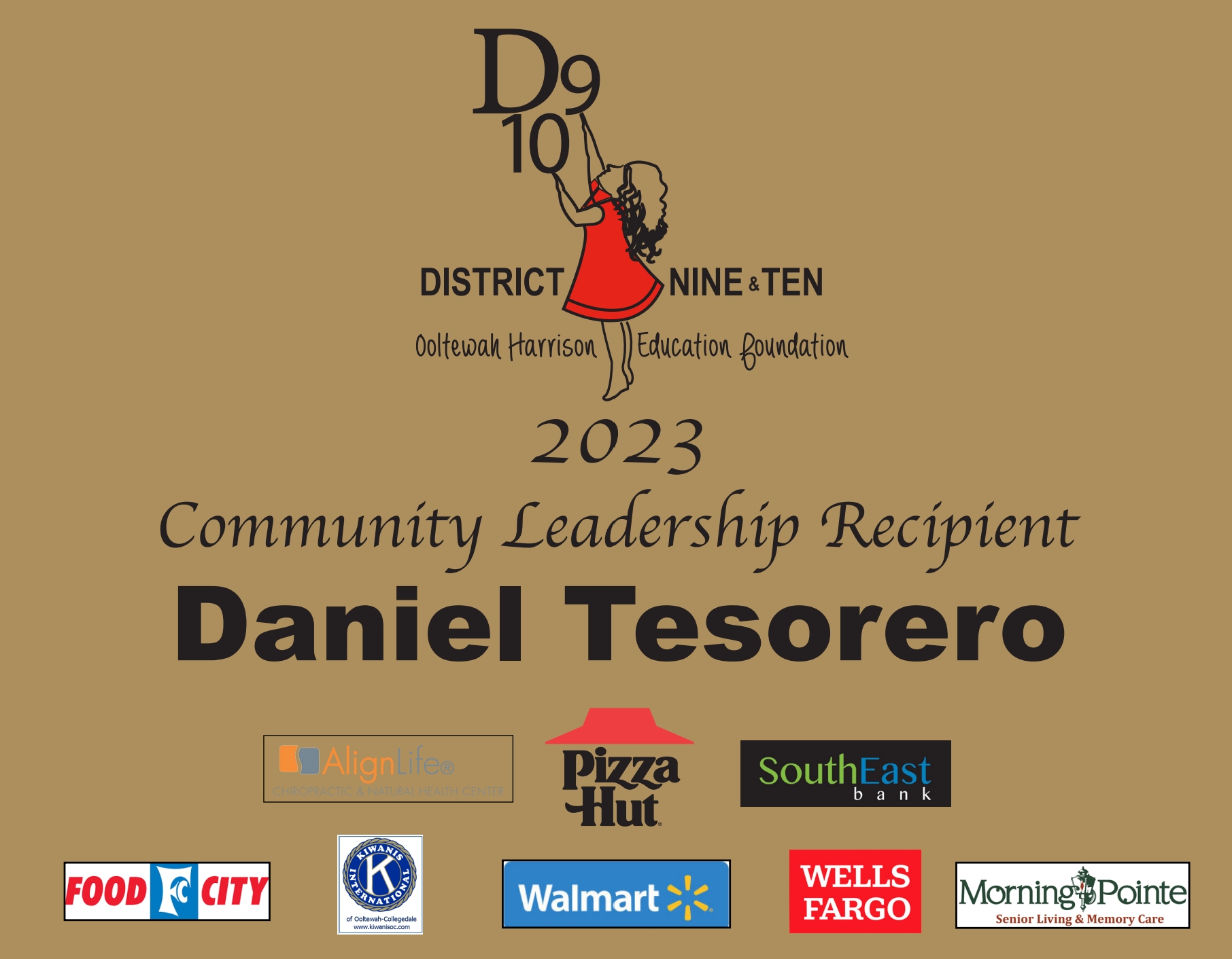 Daniel Tesorero, a committed individual, was recognized as the Community Leadership Recipient by the District Nine & Ten Ooltewah Harrison Education Foundation in 2023.